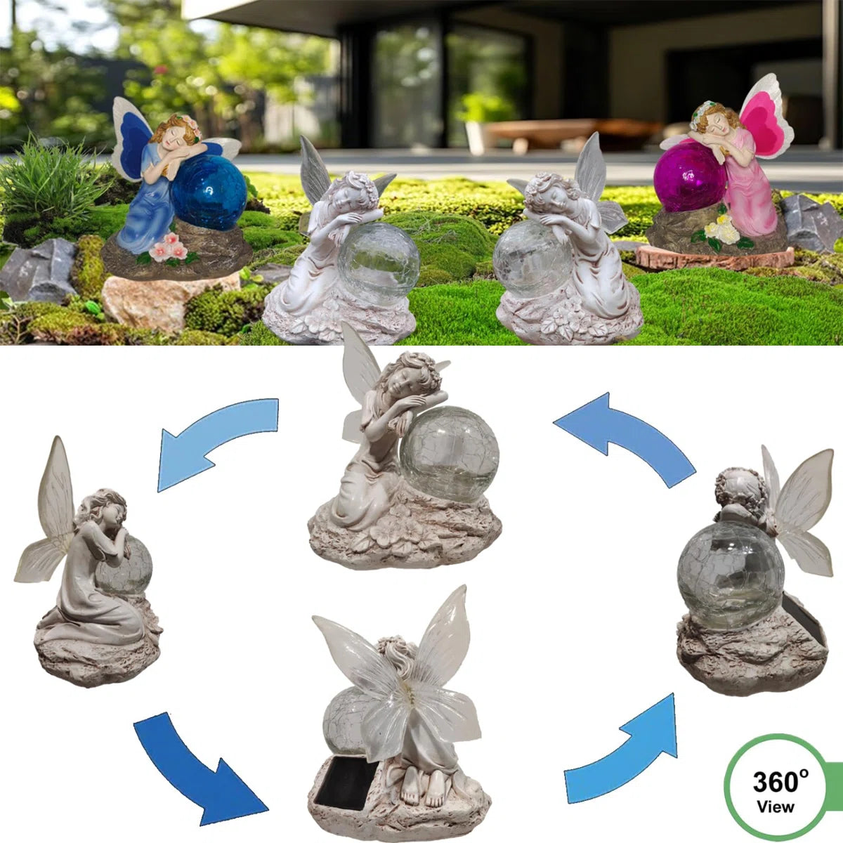 Fairy Garden Statue Outdoor with Glass Ball,Fairy Garden Statue