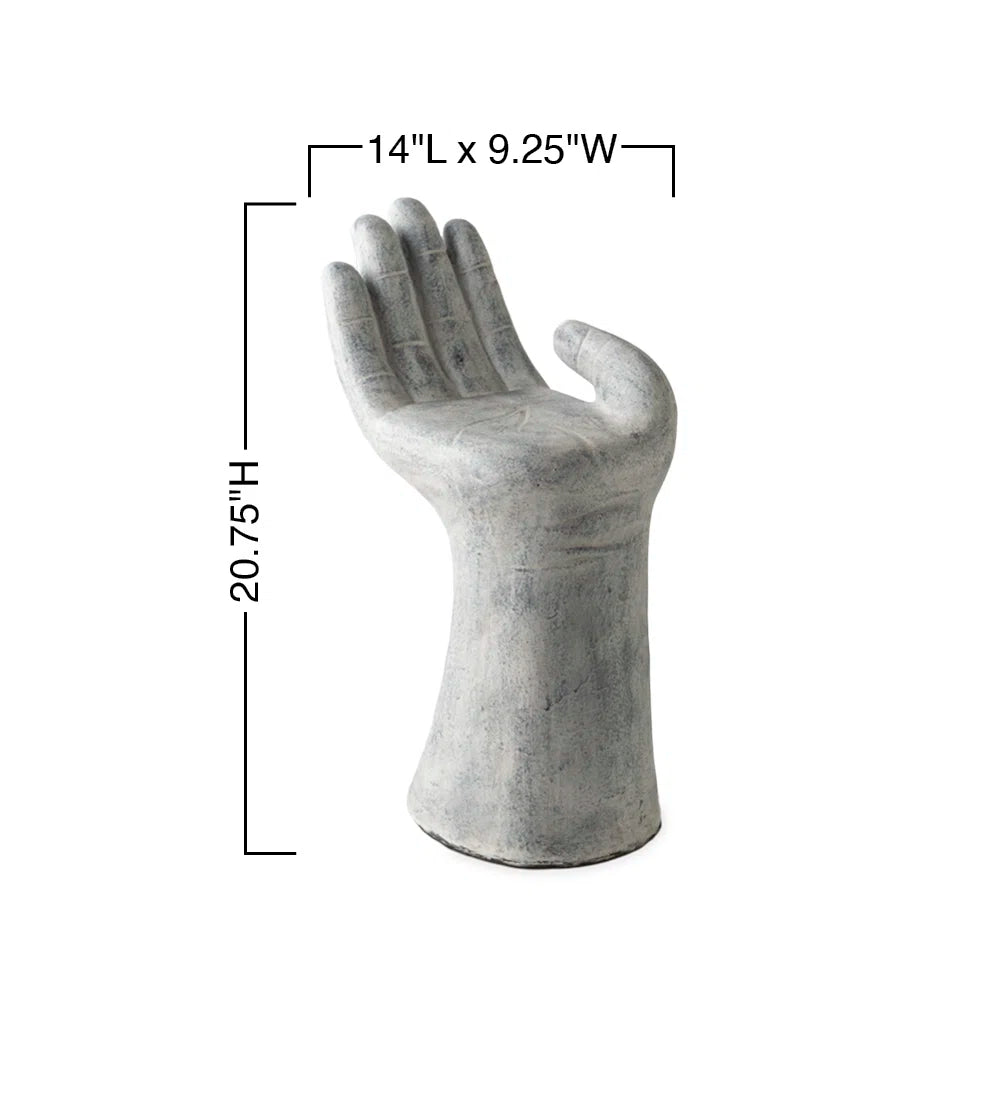 This tranquil Hand-Shaped Garden Sculpture is made of lightweight glass-reinforced cement and designed for outdoor use. It's perfect for holding birdseed or a planter. This versatile sculpture may also be used indoors as a catchall in your entryway.